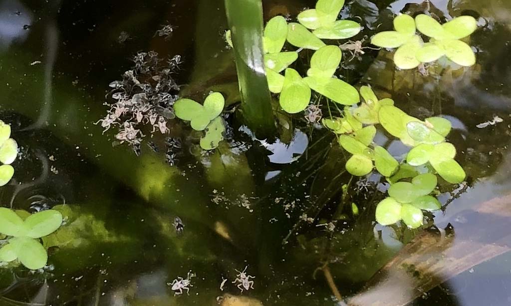 間引きした時にヤゴが浮いていたので傷付けたか?と思ったら、今年羽化した抜け殻でホッとした