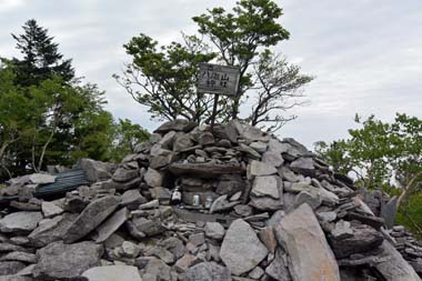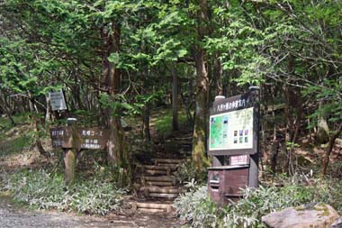 大間々駐車場から少し歩くと「剣ヶ峰」、「釈迦ヶ岳」に登る登山口。「八海山神社」はその手前にある展望が開けたところにある。
