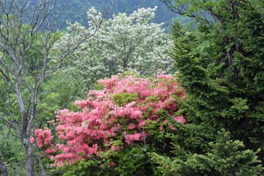 ヤマツツジやズミが満開