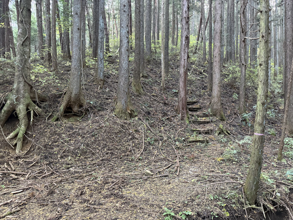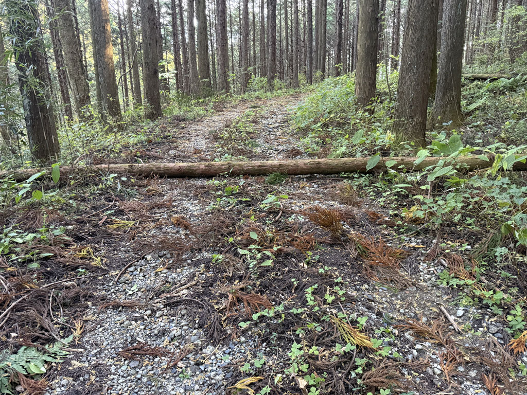 先週の11月2日(土)にこの山に登りましたが、無線機とiPhoneがWi-Fiで繋がらず、FT8の運用ができませんでした。そのため「毘沙門山登山口」から山頂へふたたび登りました。こちらのコースは山行時間が短く山頂往復のみならおすすめです。(登山口手前のスペースがある所に駐車しようと道路から作業道に入ったら倒木が道を塞いでいました。)