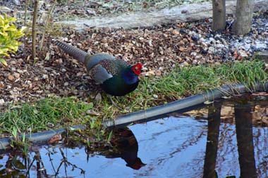 隣の空き地まで来ていたキジが今日は、我が家の池の水を飲んで行った。