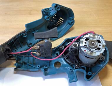 ケースを外すと電線、モーター、シャフト、SWなどが現れた