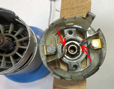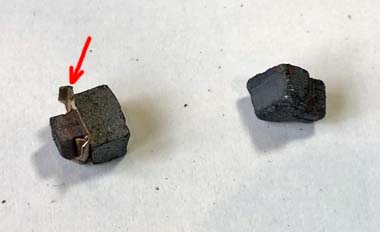 ブラシとブラシアームの一部が付いていたブラシホルダー(矢印)