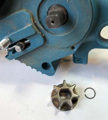 モーターユニットを外すためにまずは、丸いリングを外してスプロケットを軸から抜く。