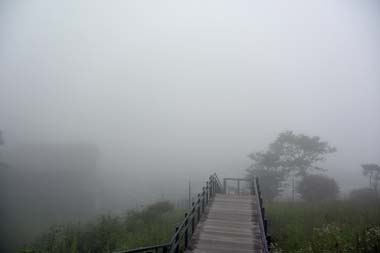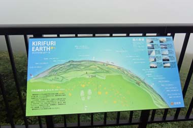 階段を登り切ったところの展望台。雲で真っ白なので何が観れるか案内版を確認すると太平洋まで見れる? 以前、富士山が見えた記憶がある。
