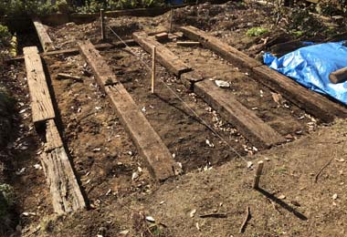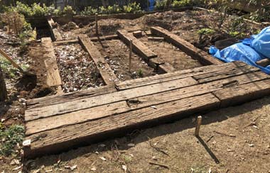 枕木を撤去して奥行き方向に枕木を引いて完成時の高さを決めた