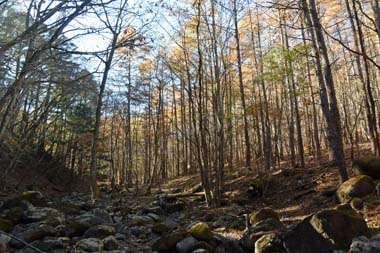 大入道に向かう途中の沢を渡るところは紅葉した葉が少し残っていた。