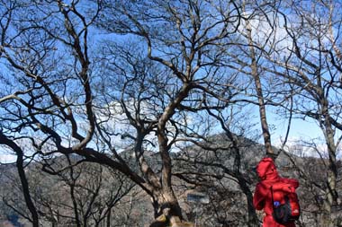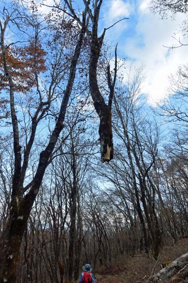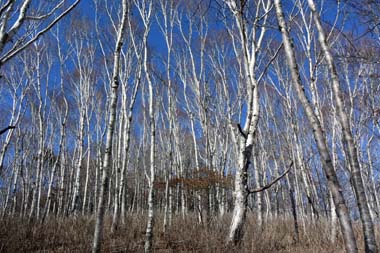 大入道山頂手前にあるダケカンバの木々は葉が落ちたことで、太陽の光を浴びて木肌の白が鮮やかに見えた。