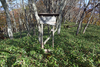 五十里湖上流にある標高1264mの「塩沢山(しおざわやま)」に登る。標高は国道121号線沿いの登山口で約600m、山頂が1264m。