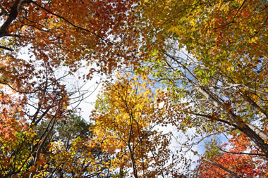 山頂手前の尾根から紅葉を迎えていた。(見上げて写す。)