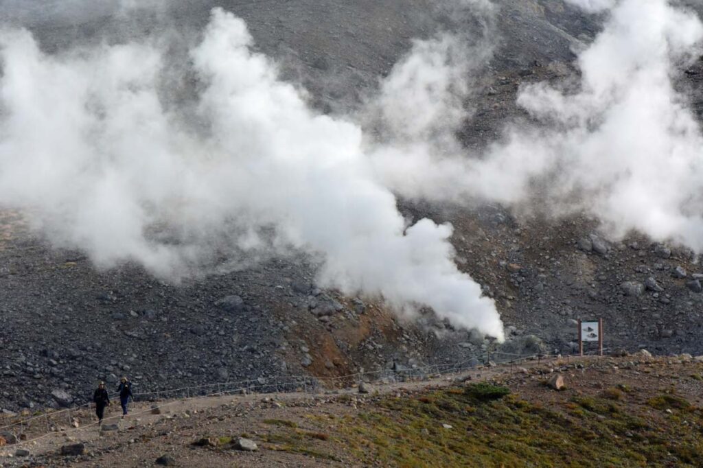 姿見の池から見た噴気