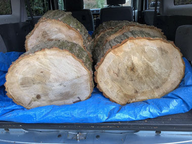 先週に続き玉切り作業を行い完了した。根元のサイズは横幅が約50cm、縦方向で40c超えと運ぶのが大変だ。
