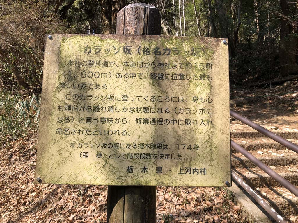 市町村合併前の上河内村 カラッソ坂の擬木階段は174段と記されている。数えたけど?