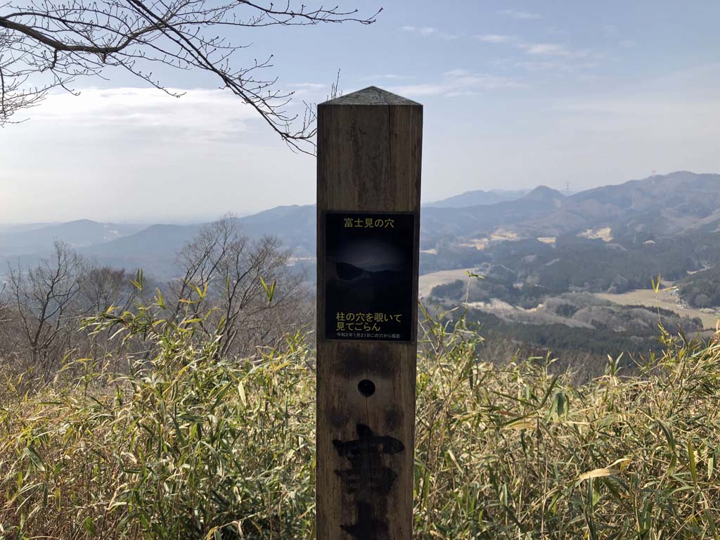 穴を覗くと富士山が見えるらしい。ここにベンチがあり展望が良いのでコーヒーを飲んで一休みした