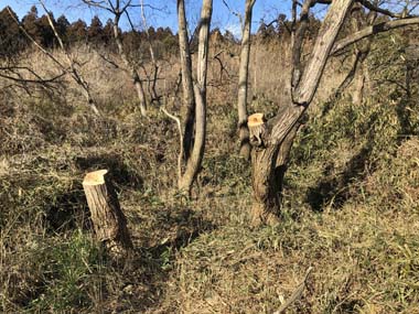 栗の木入手 2日目 薪活とストーブ 2021-02-09 笹(のような植物)を釜で刈り伐倒作業のスペースを確保したが、密生している所は刈り払い機て効率よく作業をすることにした。 今日の作業で薪は8列+まで集まった。栗畑は広いので薪の入手量を1日で1列分を目安に続ける。