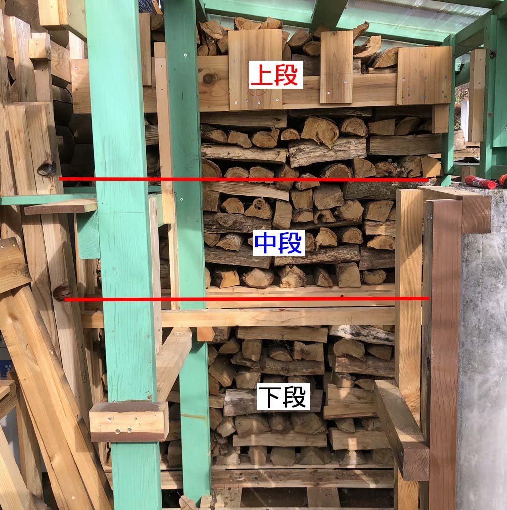 各段から10本の薪を選んで測定した結果(測定方法などは2年前と同じ)