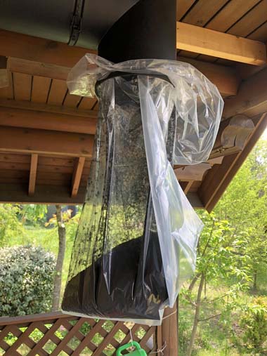 煙突掃除 薪活とストーブ 2019-05-09 母屋に設置したストーブで2回目の冬が終わる。煙突の状況を確認してもらうことを兼ねて業者の方に掃除を依頼した。煙突に付着していた煤はサラサラタイプで、煙突も問題なし。(煤はストーブによって違うことがあるそうだ。)