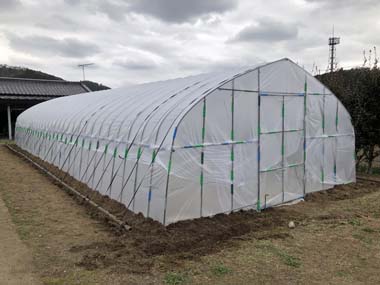 シートを新調したとの事で、切れた所の修繕もなくハウス作り作業が楽になった。
