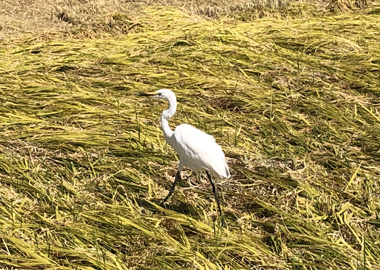 稲刈りの手伝い 農作業 2020-09-30 大雨で稲が倒れてしまったうえに、9月の長雨で稲刈りが遅れてしまった。倒れた稲はコンバインで刈っても刈り残しが出るため、手刈りを手伝ってきました。 サギの仲間が逃げずに餌を探していた。稲を刈った後は餌を見つけやすいのか?