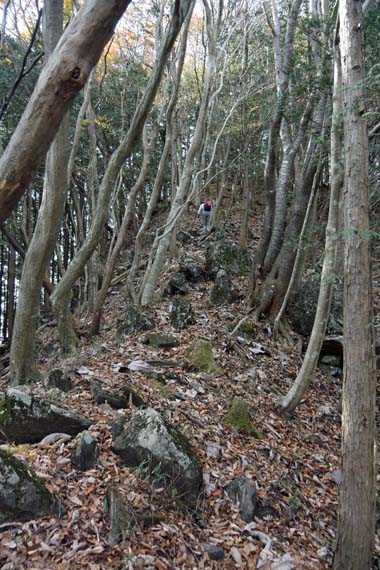 山頂手前に岩が露出した急な登りあり(ロープが設置されていたところもある)