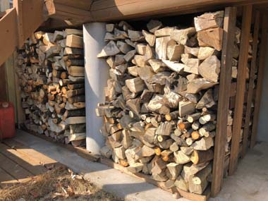 2月7日からベランダ下に積み始めた薪が約1ヵ月で満タンになった。ここのストックで約3ヵ月分(約6m3)の燃料になる予定。