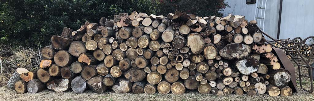薪作り作業(2023.12.20) 薪活とストーブ 2023-12-20 昨日に続き玉切り作業を行い終了した。「年を越しても良いからここで薪割りまで行えば」との事なので、次回は薪割り作業を行う。どこまで年末までに作業が進むか? 玉切りした丸太の数が想像以上となった(2列) 両サイドの固定がないのでかまぼこ状に積まさる底辺で4mを超える長さ、高さも1m超えた