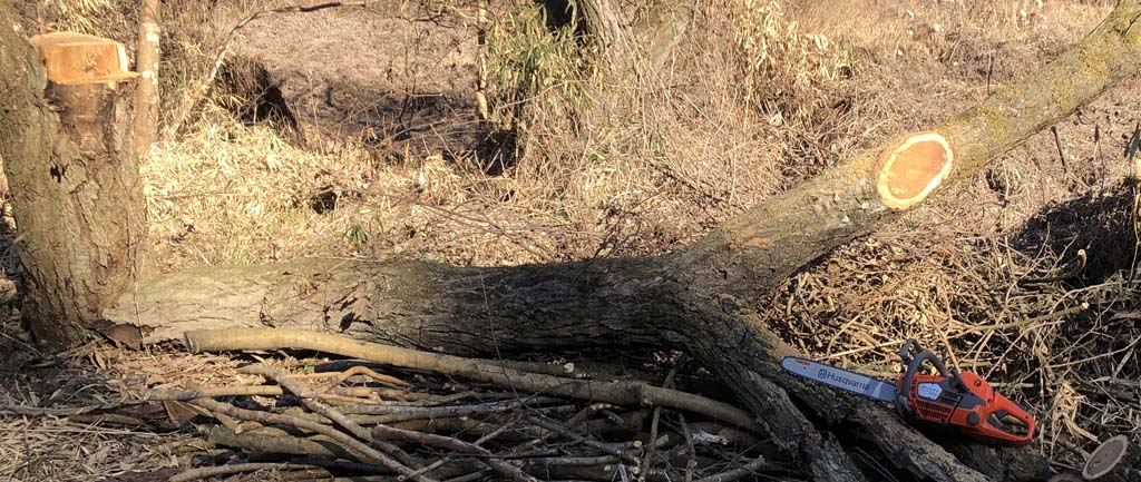 使い始めの感想は、135e(236e)に比べると重量が軽く、エンジンの吹け上がりが良く、受け口、追い口、枝払い、玉切りと一連の作業がスムーズに進んだ。もう少し使ったら感想を記しておこう。