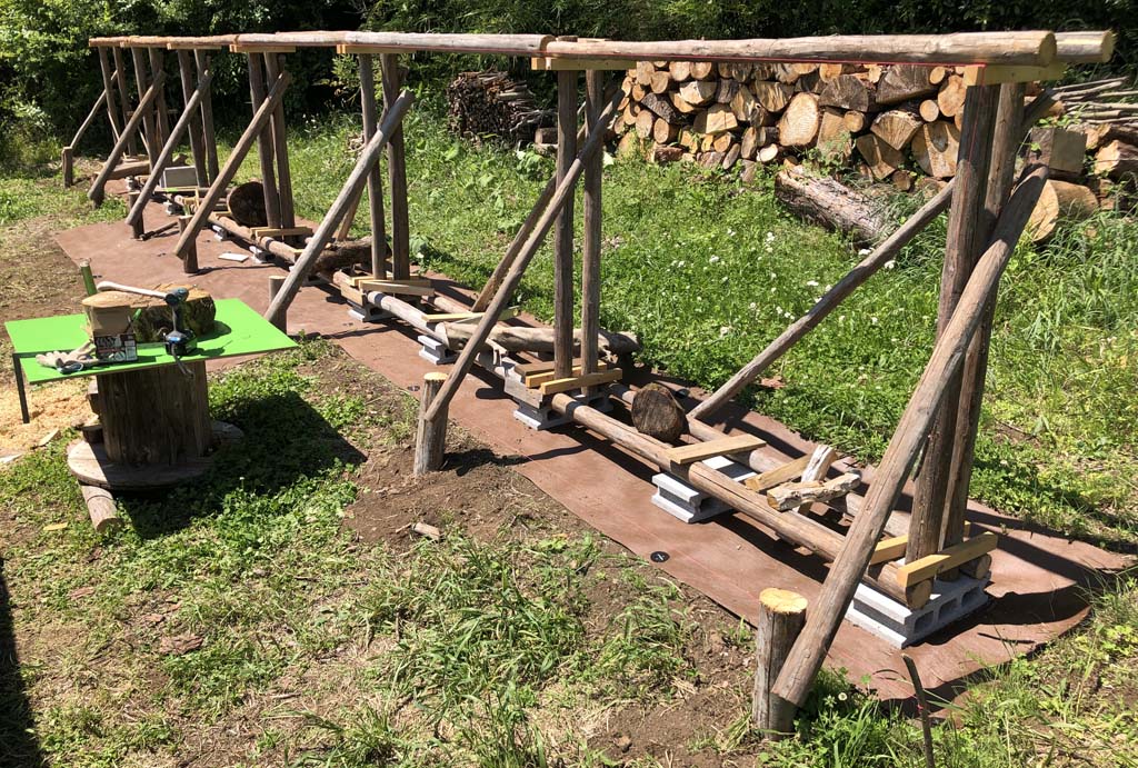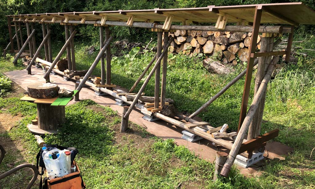 2023-24薪活結果は想定以上の出来高から薪ラックが不足となり玉切りと薪の状態で雨ざらしの為、これを収納する薪ラックを作り始めた。(作り方は以前と同じ