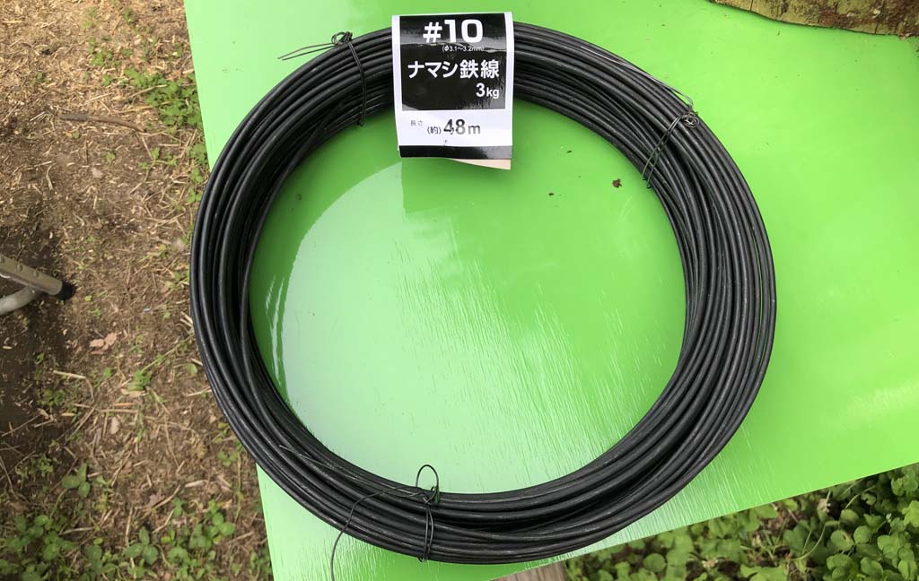 番線で固定した状態で、左はうまく番線を捩れたが右はいまいちの出来具合で、この作業はなかなかコツを掴めない