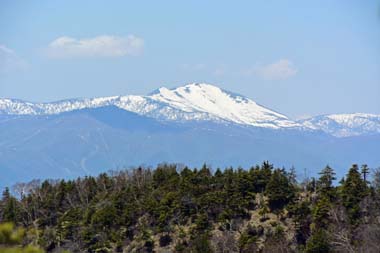 谷川岳・苗場山(日本百名山)とのこと。(ズームして写す)