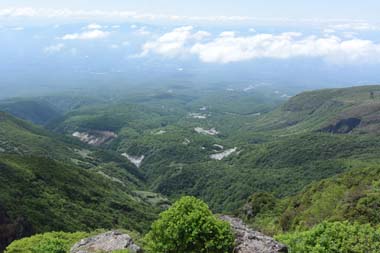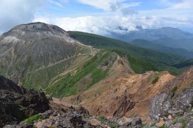 朝日岳山頂から茶臼岳 南側に雲がふんわり