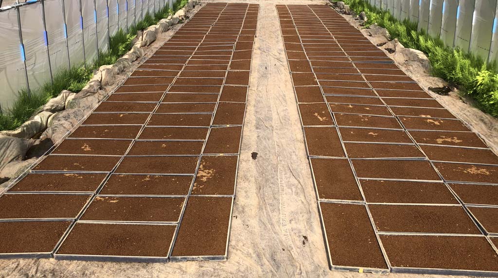 土を被せるた後はハウスに並べ発芽を促すが、はたして芽が出てくるのか一抹の不安が残る