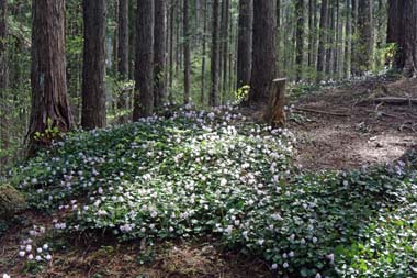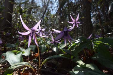 向山から花瓶山の尾根沿いにカタクリが咲いていた。