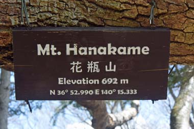 山頂きから少し離れたところの木に固定してある山名板には緯度が記されていた。