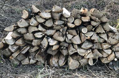 出来高は2本の伐倒(この辺の残りは2本)、2本の玉切り、1本分の薪割りで終わる。(作業時間:約3時間)
