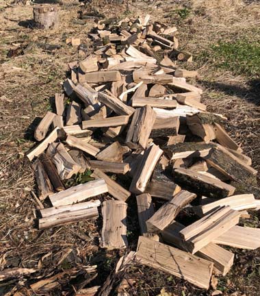 2021-22冬の薪活(12-13日目薪作り・14日目薪移動) 薪活とストーブ 2021-12-26 12〜13日目 11日目からの続きで、その後も伐倒・玉切り・割り作業が続く。 木の匂いを弱くするために、薪山を作らずに放置することにした。 14日目までの薪活(薪移動日も含む)で野ざらしにする井桁積みで6列目まで来た。