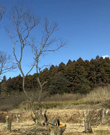2022年の薪活スタート。のんびり正月を過ごしていたので体が鈍ってるか?無理をせず、安全に心がけ正面の木を伐る。