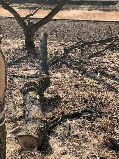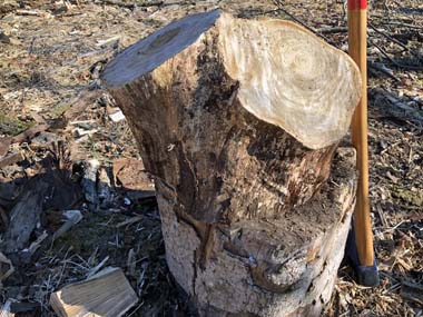 次の日に修理が終ったとのことで、チェーンソーが手元に戻ってきた。(近所のお店で購入しておいて良かった。)1日の間を置いて作業を続け、ラストの木もほぼ薪の状態まで進んだ。