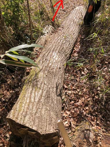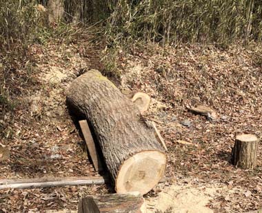 玉切り作業するにも幹が太く動かせない。(回転も無理)