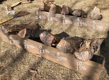 2021-22年冬に使う薪の含水率は(東側2列目)