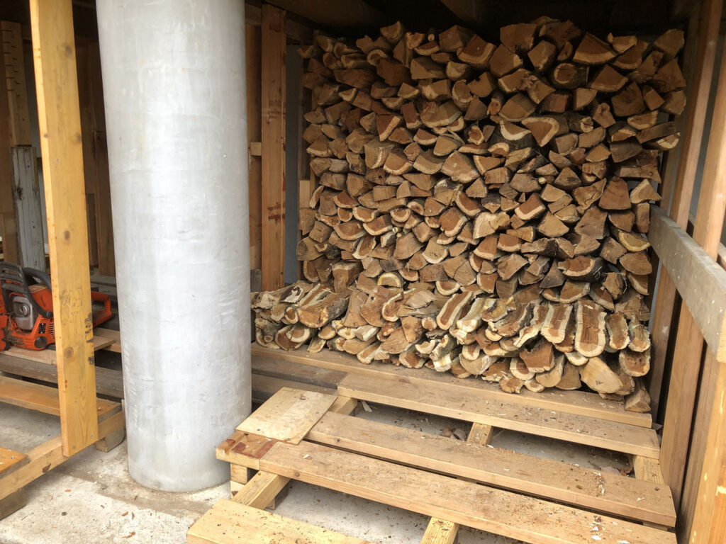 下段の薪をもう少し乾燥するようスノコ(昨年と同じような形)を変更し風通しを良くしたつもり。