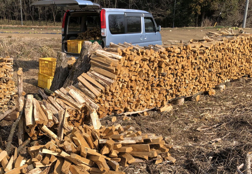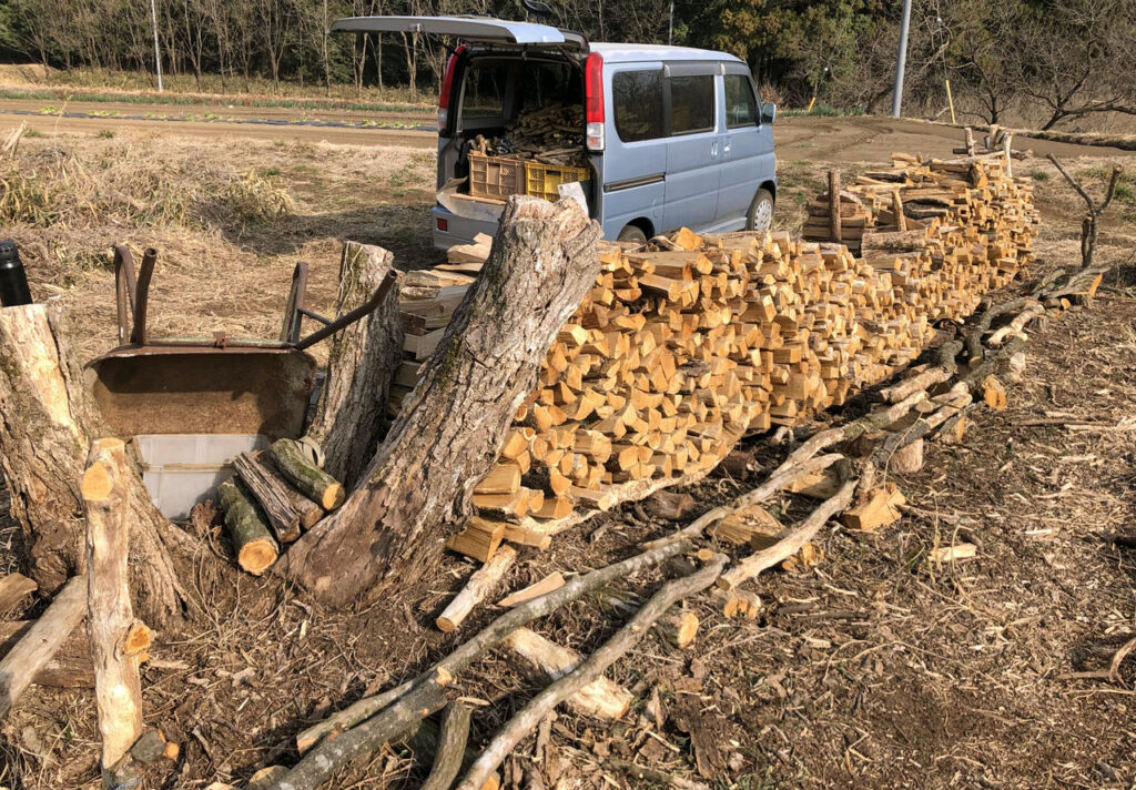 昨年11月から作った薪を現場で一時保管(野ざらし=青空保管)させて頂いた。