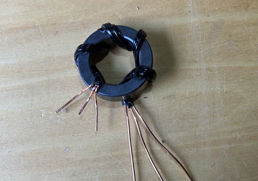 部品はトロイダルコア FT-114 43材とφ0.8mmエナメル線(資料はφ0.7mmだがあまり物を使う)