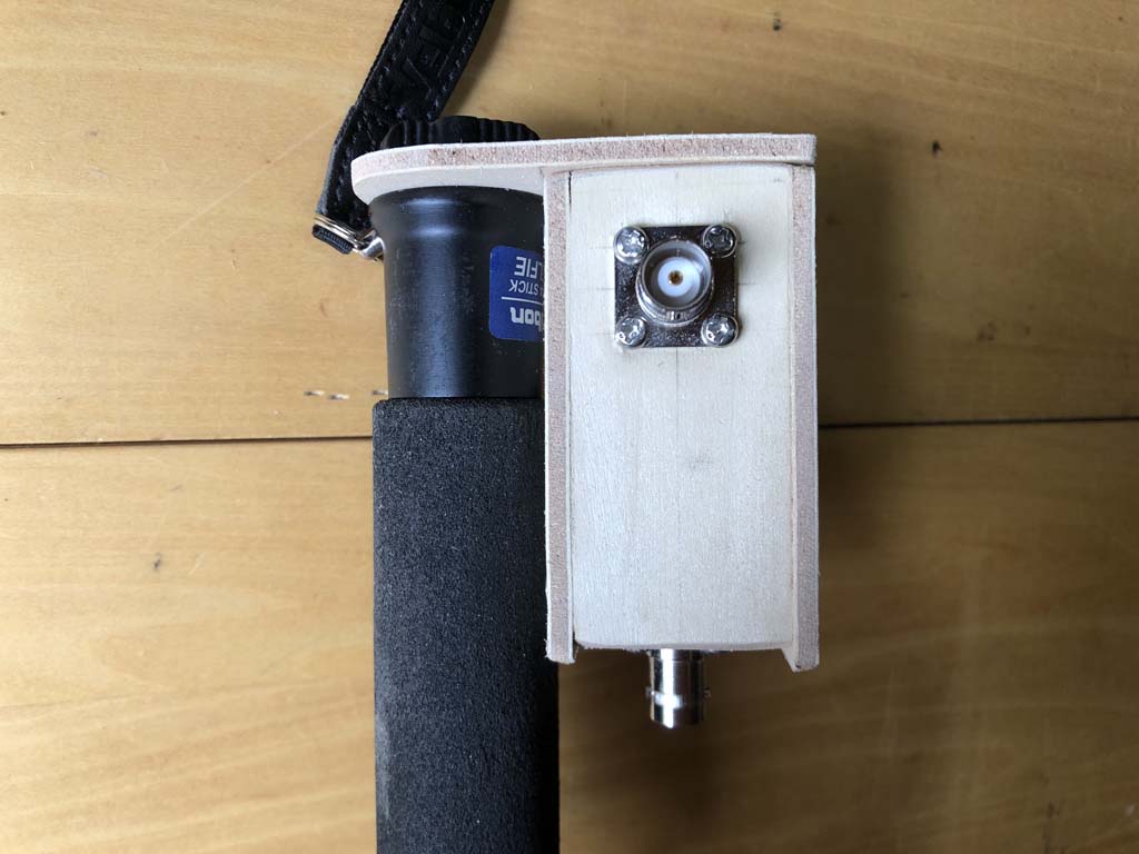 アンテナ取付・無線機側ケーブル接合は共にBNCコネクター(角座4穴)を使う