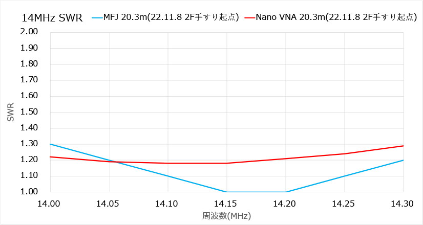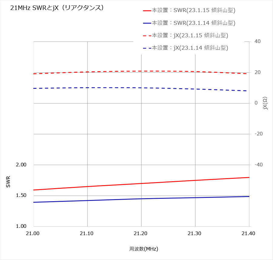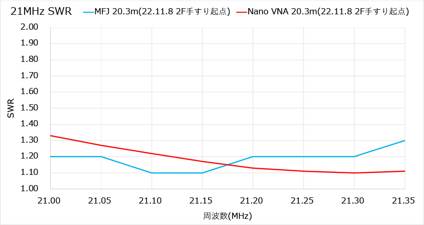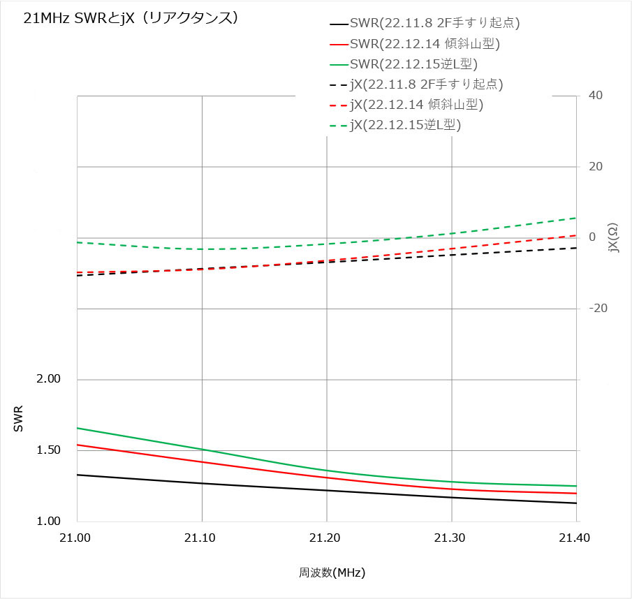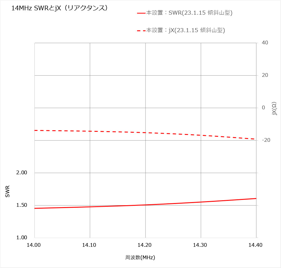 SWRとリアクタンス測定結果(Nano VNA)