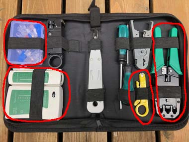 ネットワークの導通を確認するテスターを調べたらLANケーブルを作成する工具とセットで販売している物がありそれを購入。
