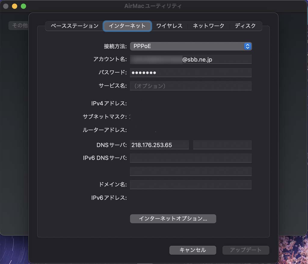 ・アカウント名:xxxxxxxxxxxxxxxxxx@sbb.ne.jp(提示されたもの)