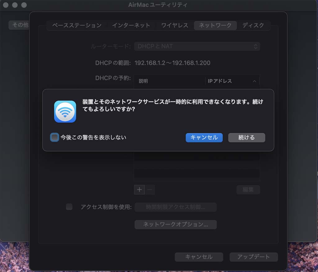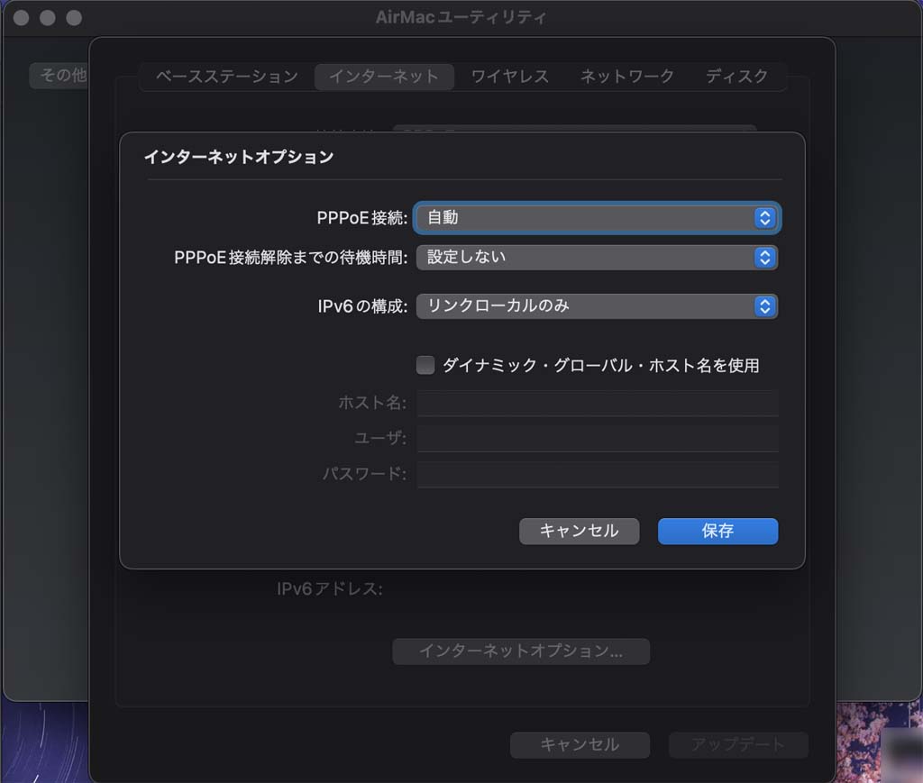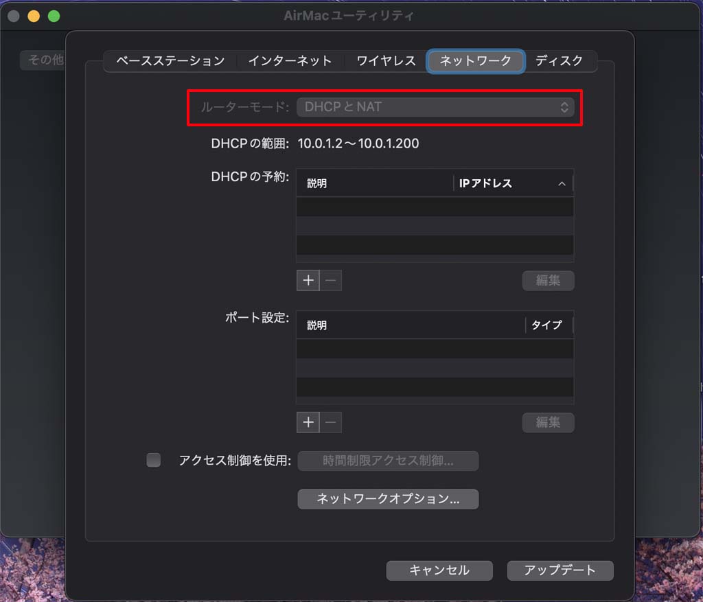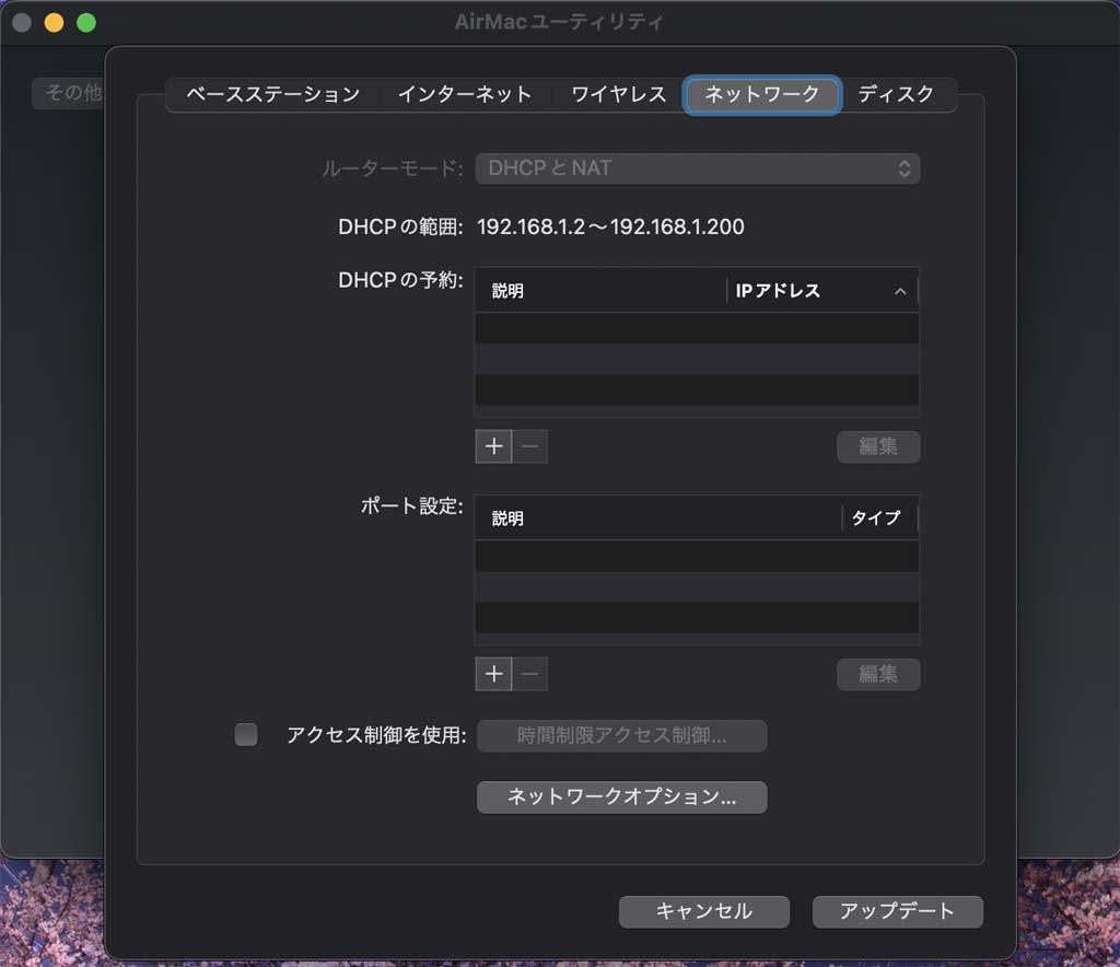 <AirMacの設定(ベースステーション設定・ワイヤレスタブ設定は除く)>