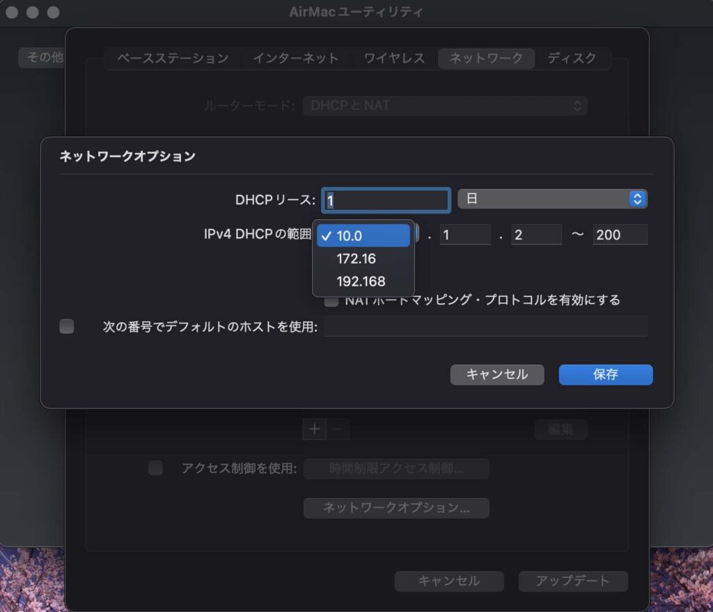 5.プルダウンメニューから192.168を選択(ここはそれぞれの環境で違うかも)