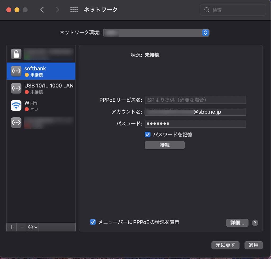 ・サービス名 :softbankで入力